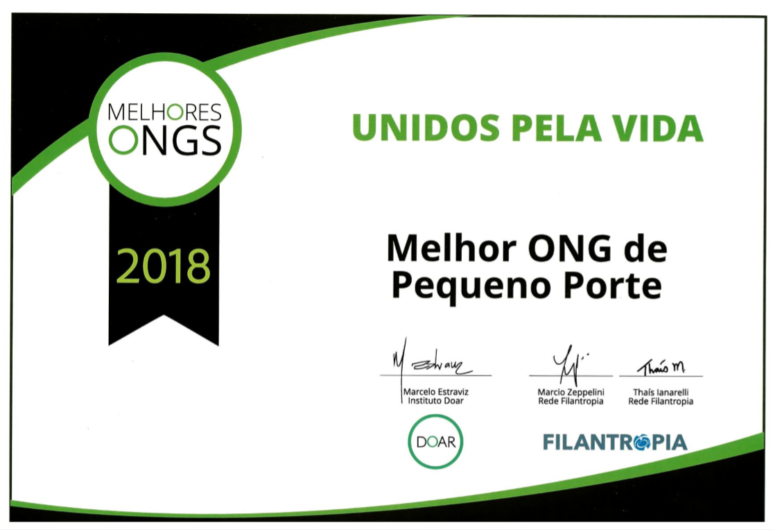 A atuação com transparência está entre nossos valores e faz parte do nosso dia a dia. Isso se reflete em reconhecimentos como o Prêmio Melhores ONGs, do Instituto Doar, que em 2018, 2019, 2020 e 2021 elegeu o Unidos pela Vida entre as 10 Melhores ONG de Pequeno Porte do Brasil. Um dos critérios para a premiação são boas práticas de gestão e transparência.
